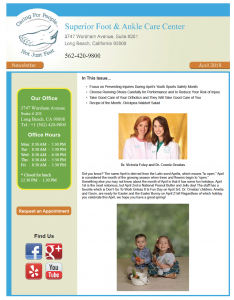 Superior Foot and Ankle Care Center Newsletter for April 2018
